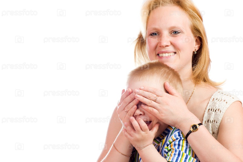 Мать с сыном на белом фоне