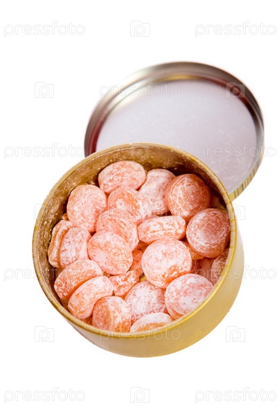 Оранжевые конфеты в жестяной банке