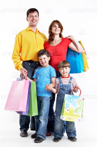 Счастливая семья с покупками