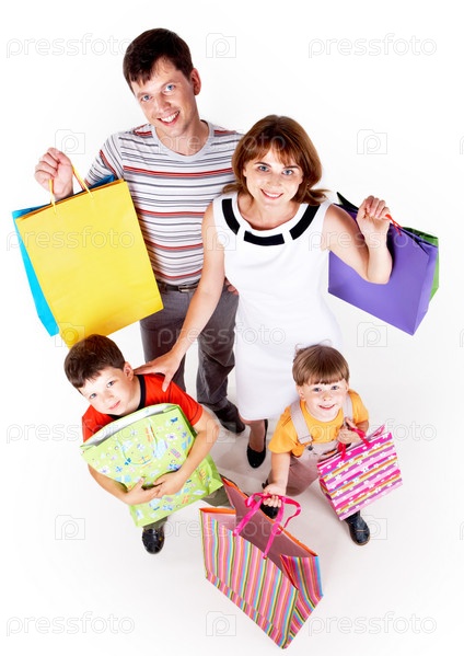 Счастливая семья с покупками