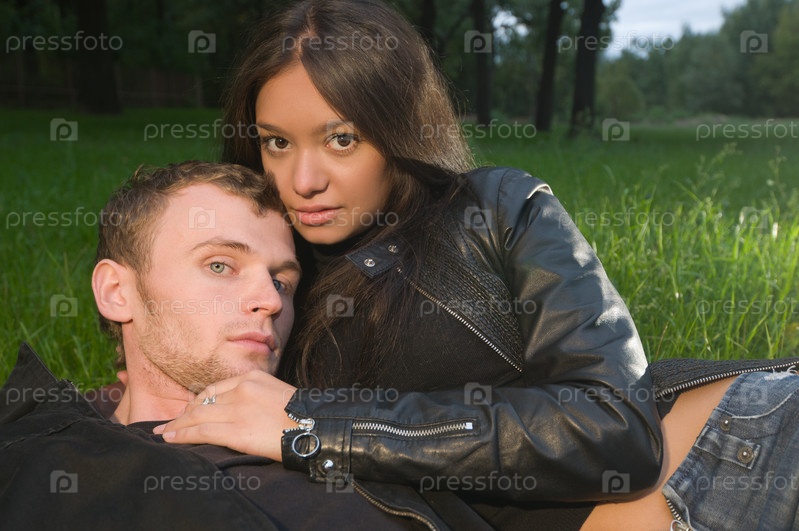 Молодые парень и девушка лежат на траве