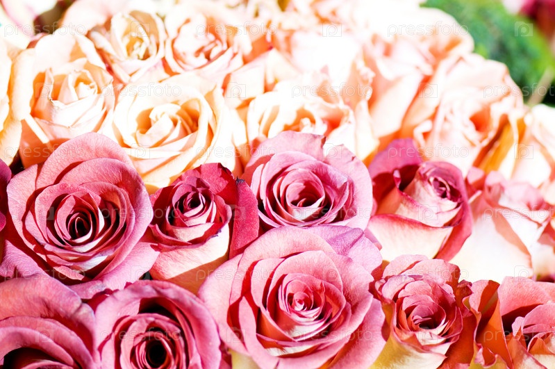 Букет из розовых и кремовых роз крупным планом