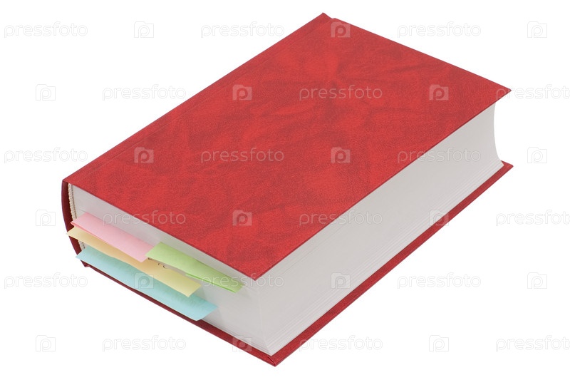 Красная книга с закладками на белом фоне