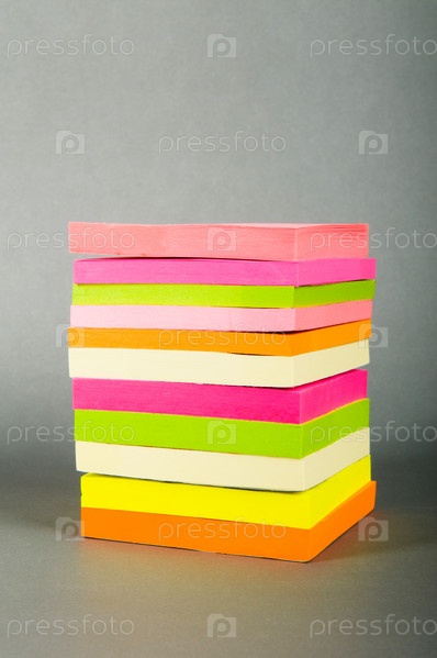 Блоки разноцветной клеящейся бумаги для заметок на сером фоне