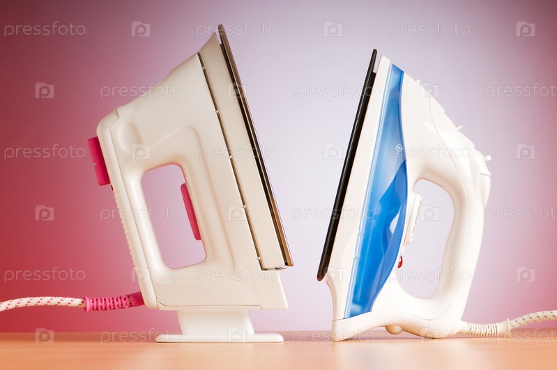 Два электрических утюга на розовом фоне