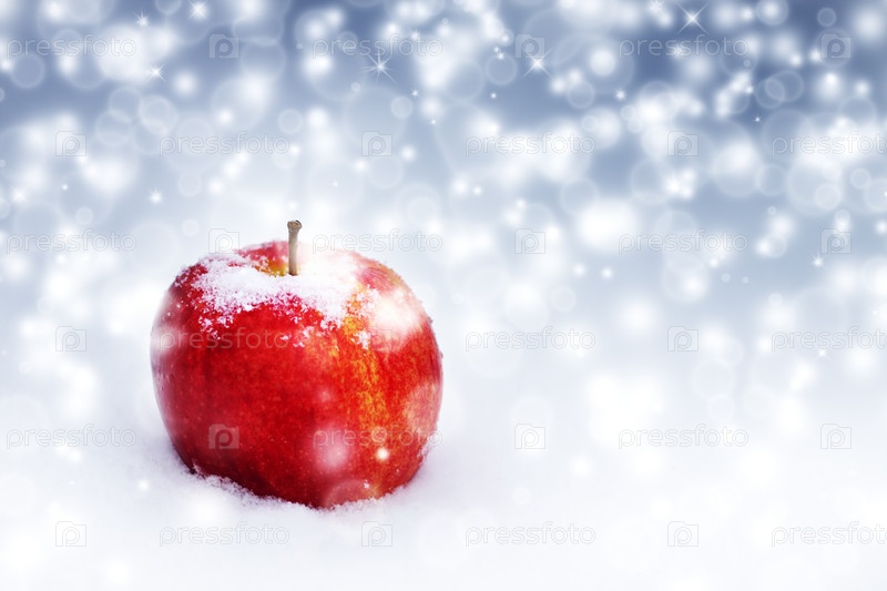 Большое красное яблоко на снегу