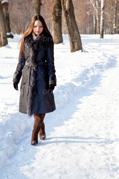 Красивая женщина в зимнем парке
