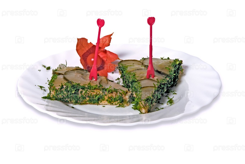 Закуска из двух жареных кусков хлеба и соленых огурцов