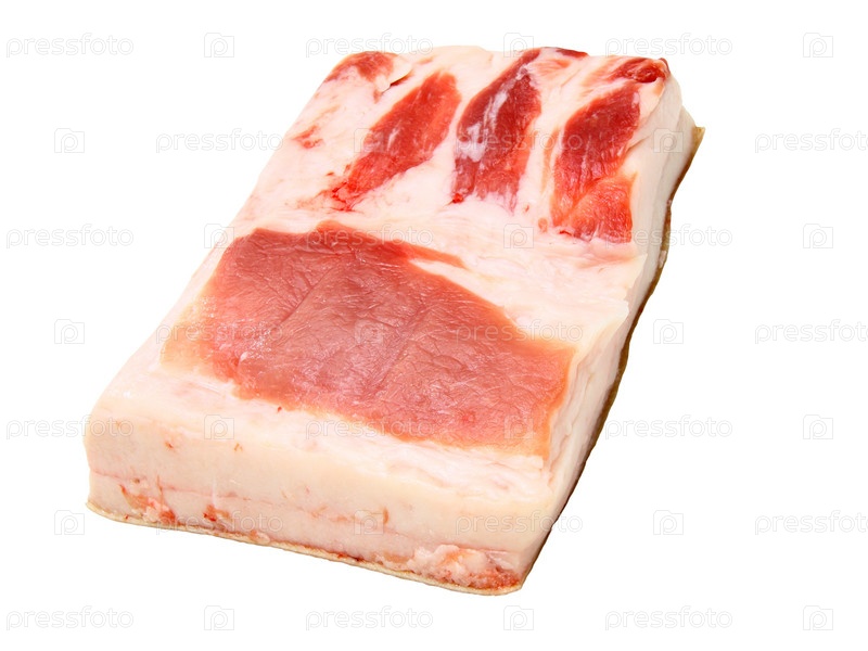 Кусок мяса с жировой прослойкой на белом фоне