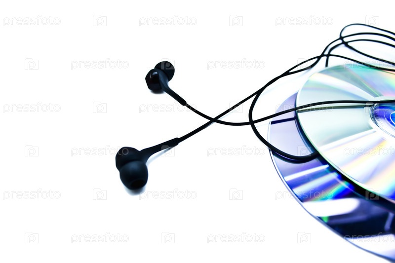 Наушники и диски на белом фоне