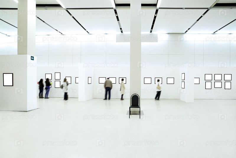 Просторное выставочное помещение с посетителями