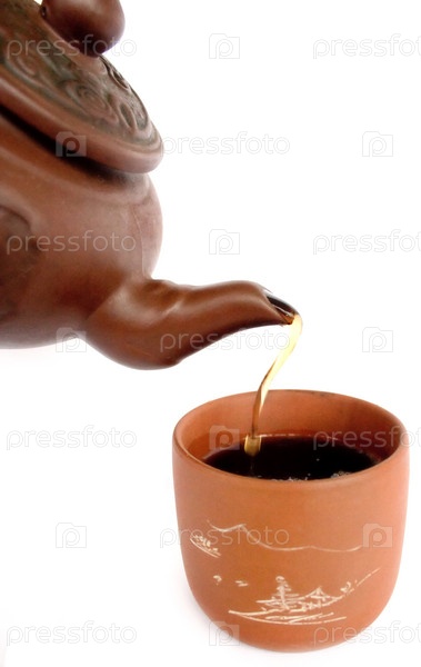 Чайник и чашка на белом фоне