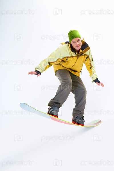 Сноубордист на белом фоне