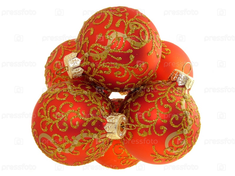 Красные новогодние шары на белом фоне