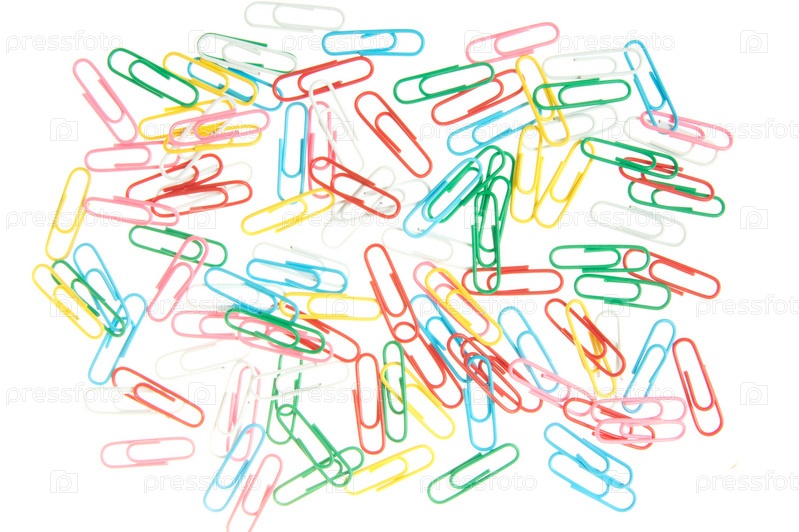 Цветные скрепки для бумаги, изолированные на белом фоне