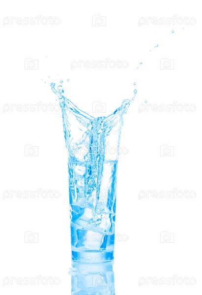 Голубая жидкость, принявшая форму стакана, изолированная на белом фоне
