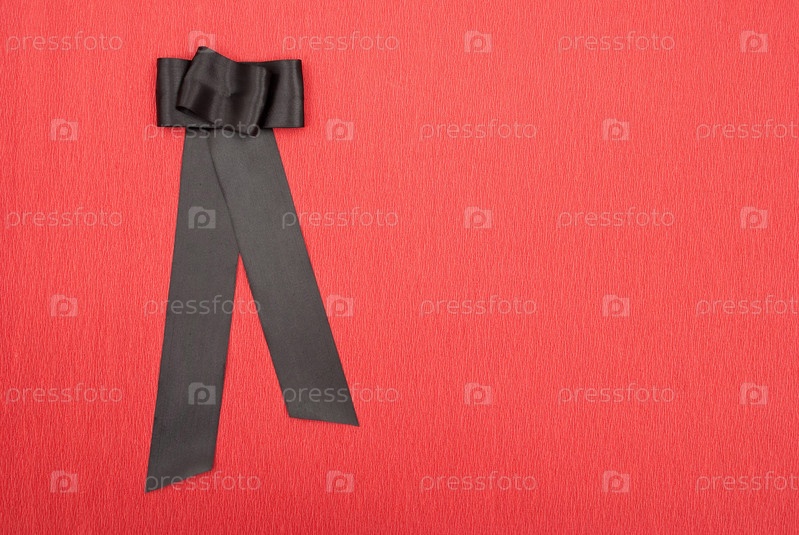 Черный атласный бантик на красном фоне