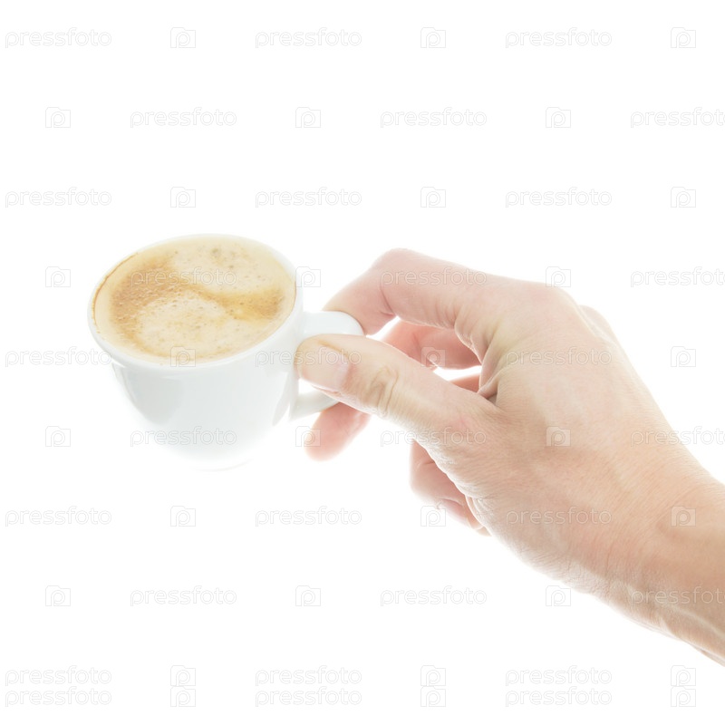 Кружка с кофе в руке на белом фоне