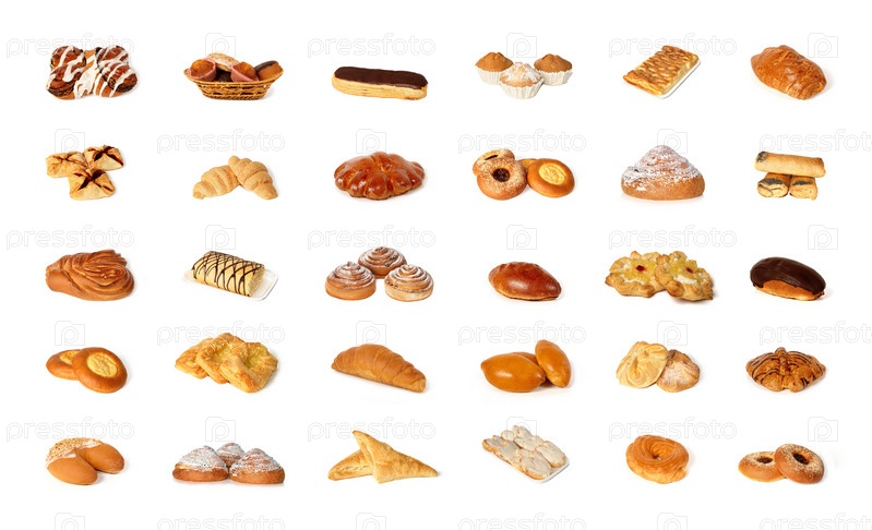 Разнообразная выпечка, изолированная на белом фоне
