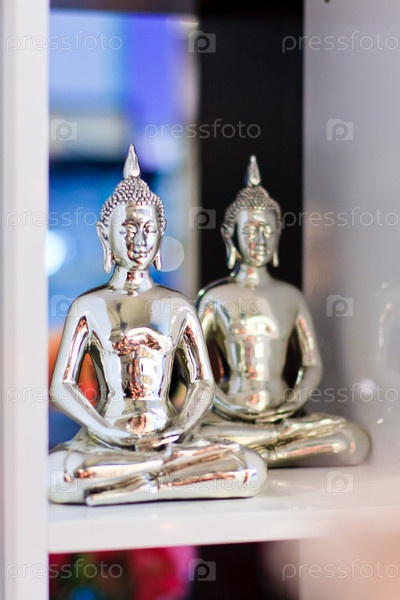 Две блестящие серебряные статуэтки Будды