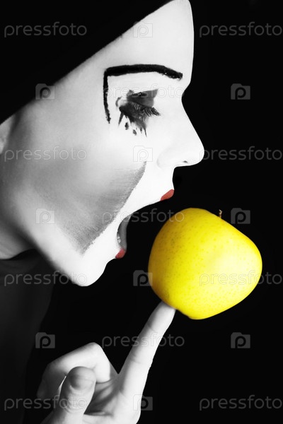 Мим кусает яблоко