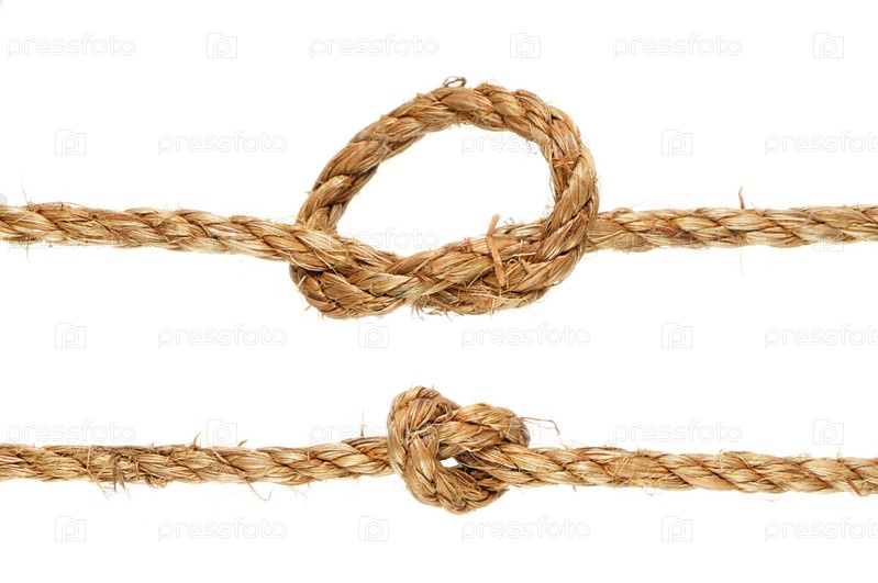 Ближайший снимок веревки с узлом, изолированного на белом фоне