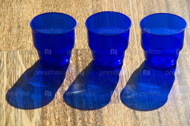 Синие стаканы на полу
