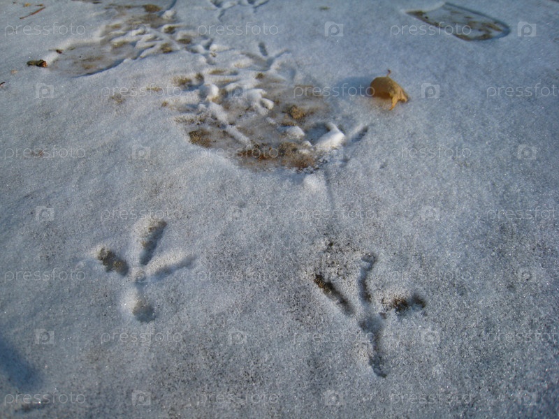 Следы птиц на снегу