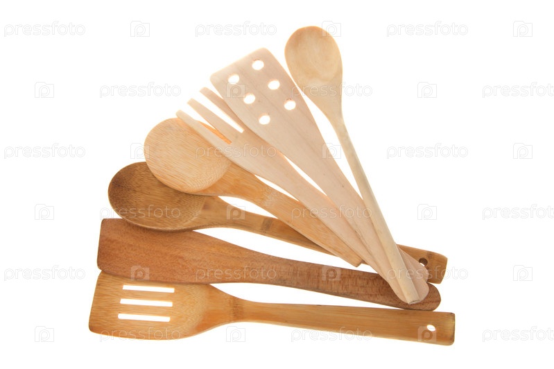 Деревянная утварь на белом фоне