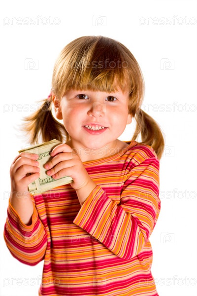 Девочка держит доллары в руках