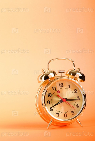 Концепт времени: будильник на цветном фоне