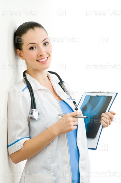 Молодой врач на белом фоне