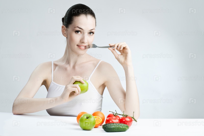 Красивая стройная девушка ест здоровую пищу