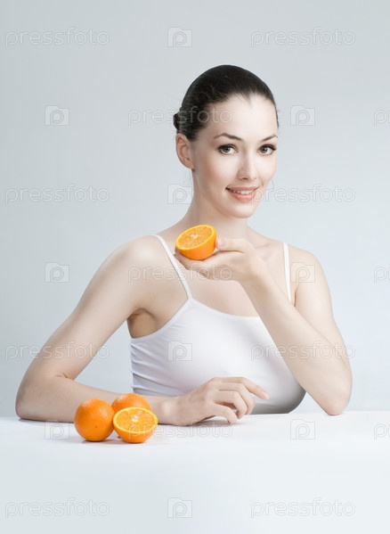 Красивая стройная девушка ест здоровую пищу