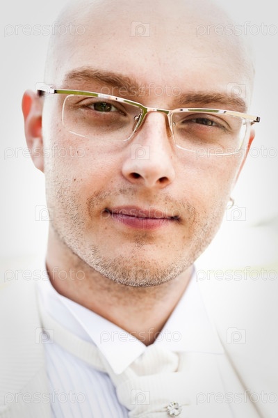 Портрет молодого серьезного жениха в очках