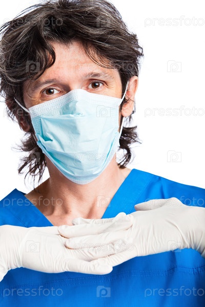 Портрет врача в маске и медицинских перчатках