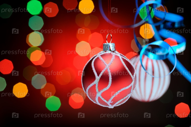 Елочные шары на фоне новогодних огней
