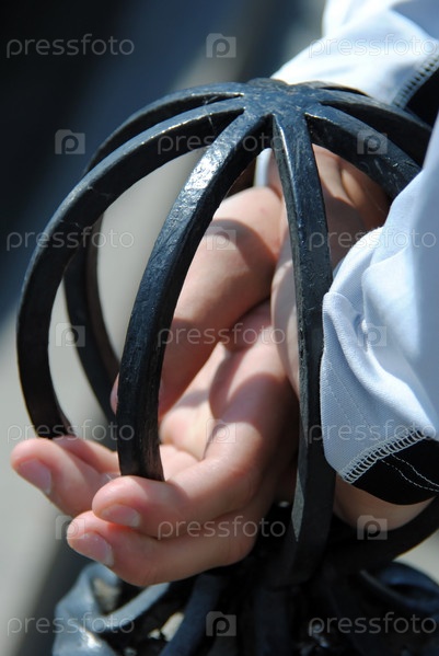 Руки молодого человека в ажурном кованом заборе