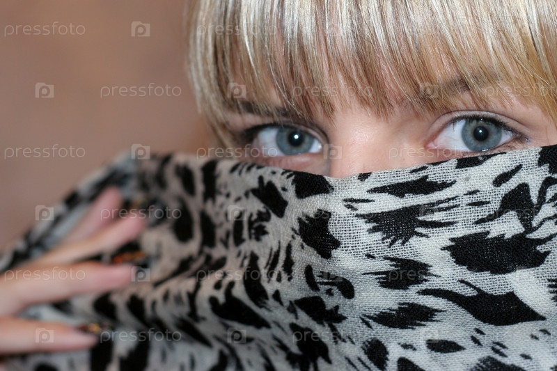 Светловолосая девушка прячет лицо шарфом