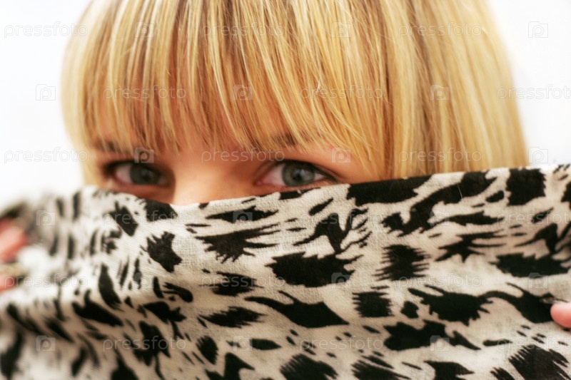 Молодая женщина закрывает лицо шарфом