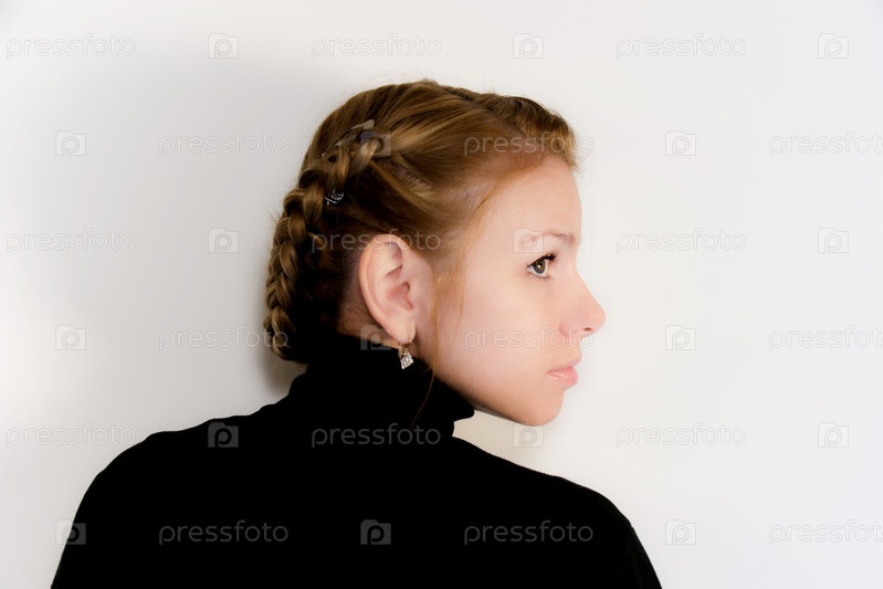 Портрет девушки в профиле на светлом фоне