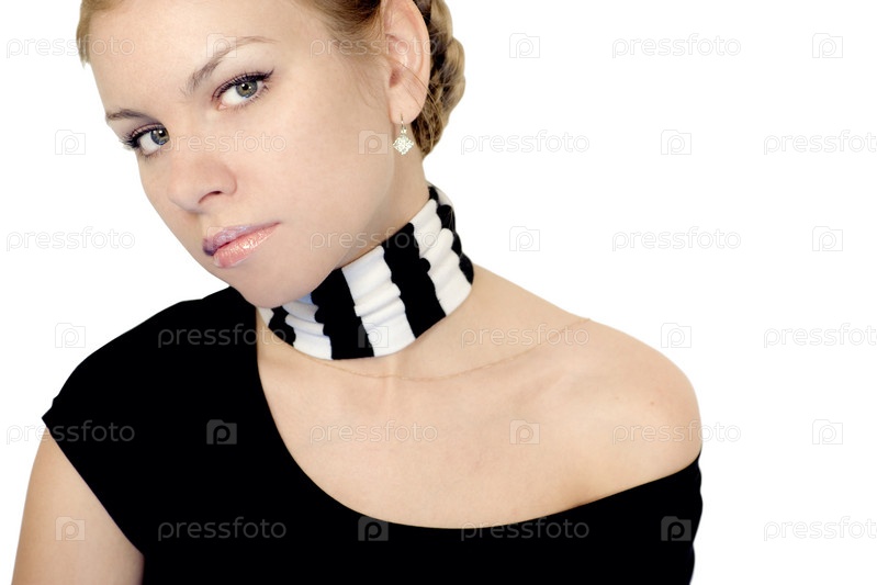 Молодая девушка в шарфе на светлом фоне