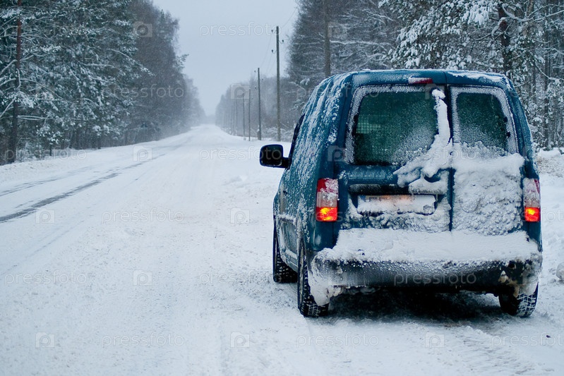 Машина на зимней, заснеженной дороге