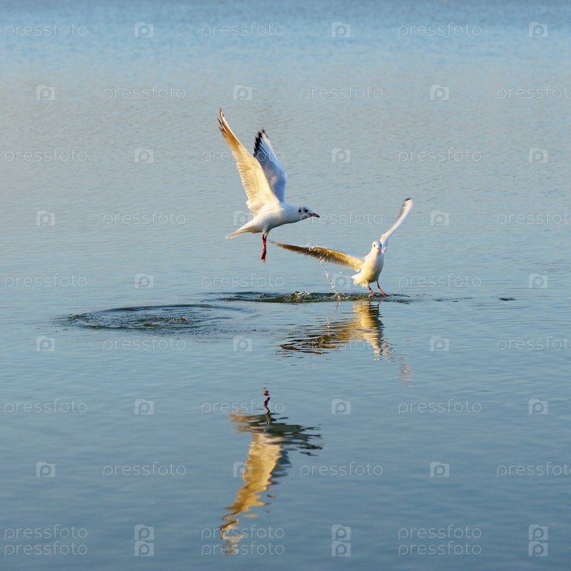 Две чайки над озером на закате