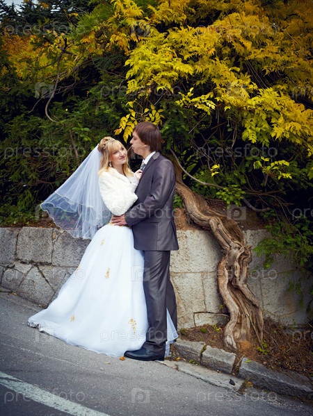 Жених и невеста в парке
