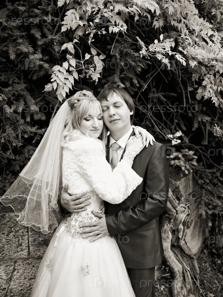 Жених и невеста в парке