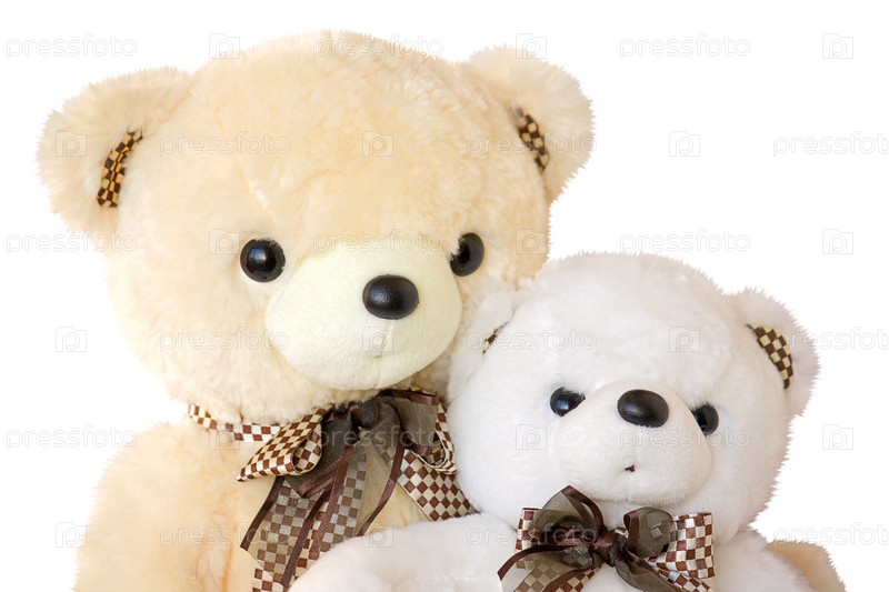 Два плюшевых медведя на белом фоне