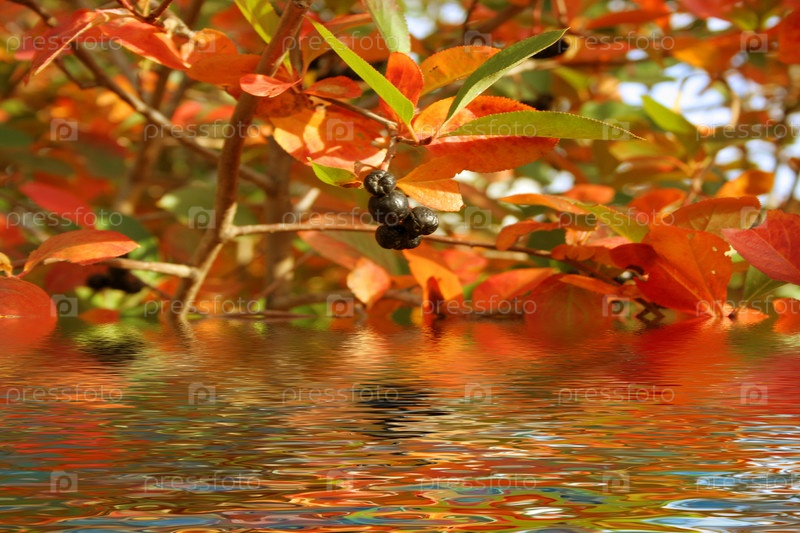 Ветви кустарника с ягодами и увядающими листьями, "выглядывающие" из воды