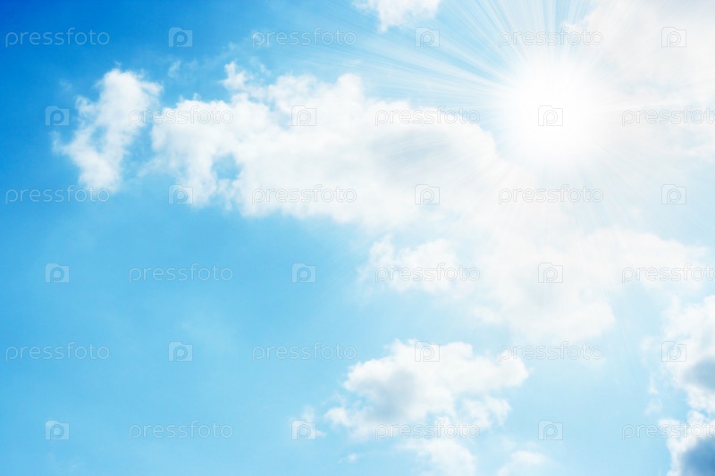 Облака и солнце на фоне ясного голубого неба