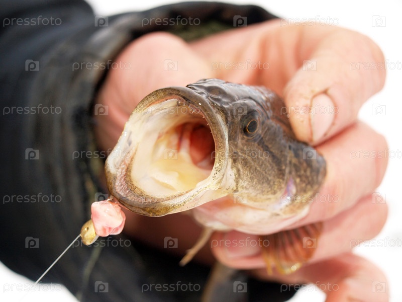 Рыболов держит в руках рыбу